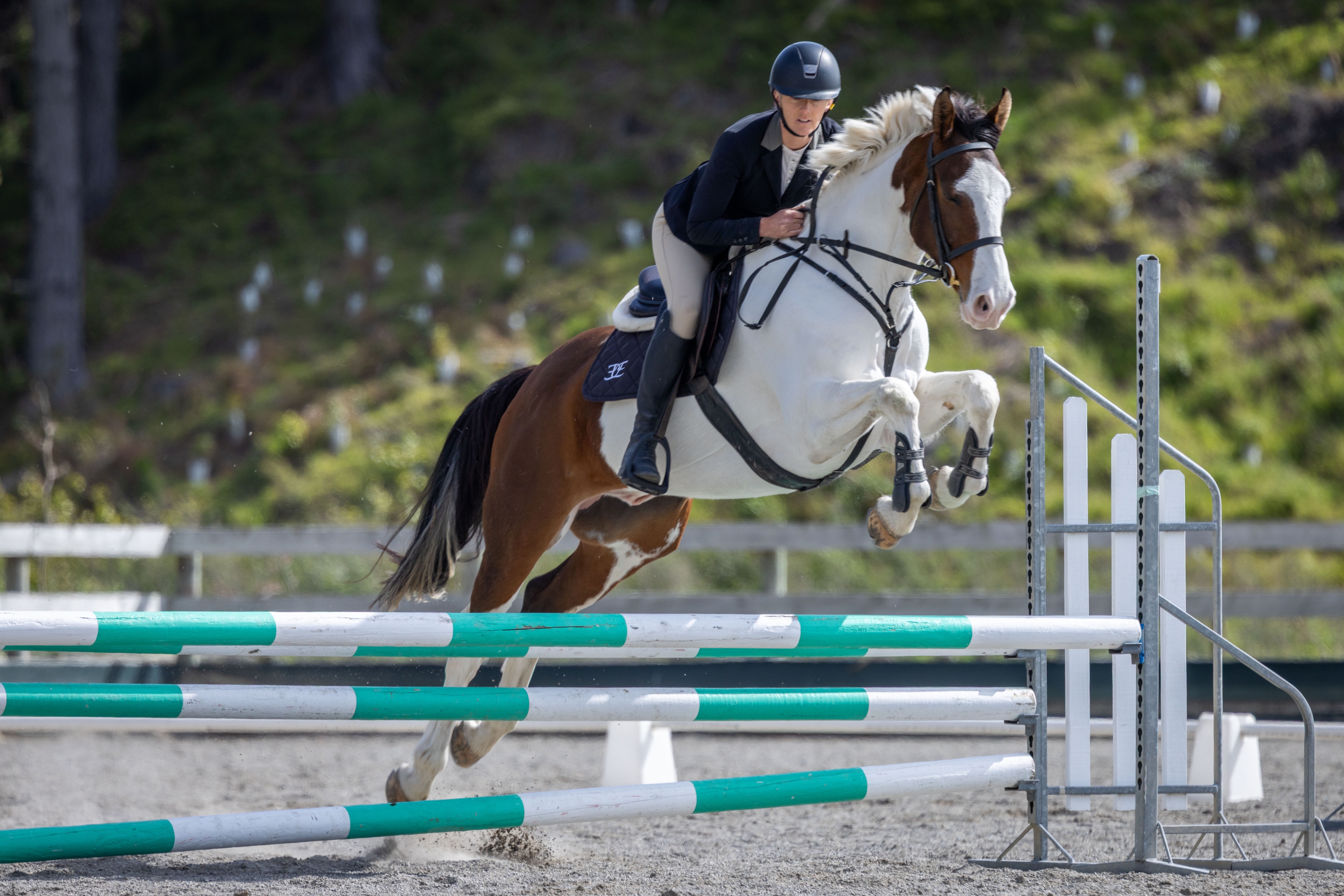 Freddie loves jumping, and is confidently jumping 90cm/1m with potential and technique to go a higher. He is honest, bold and happy jumping both fill and planks. He has xcountry schooled and was bold and brave at all types of jumps.