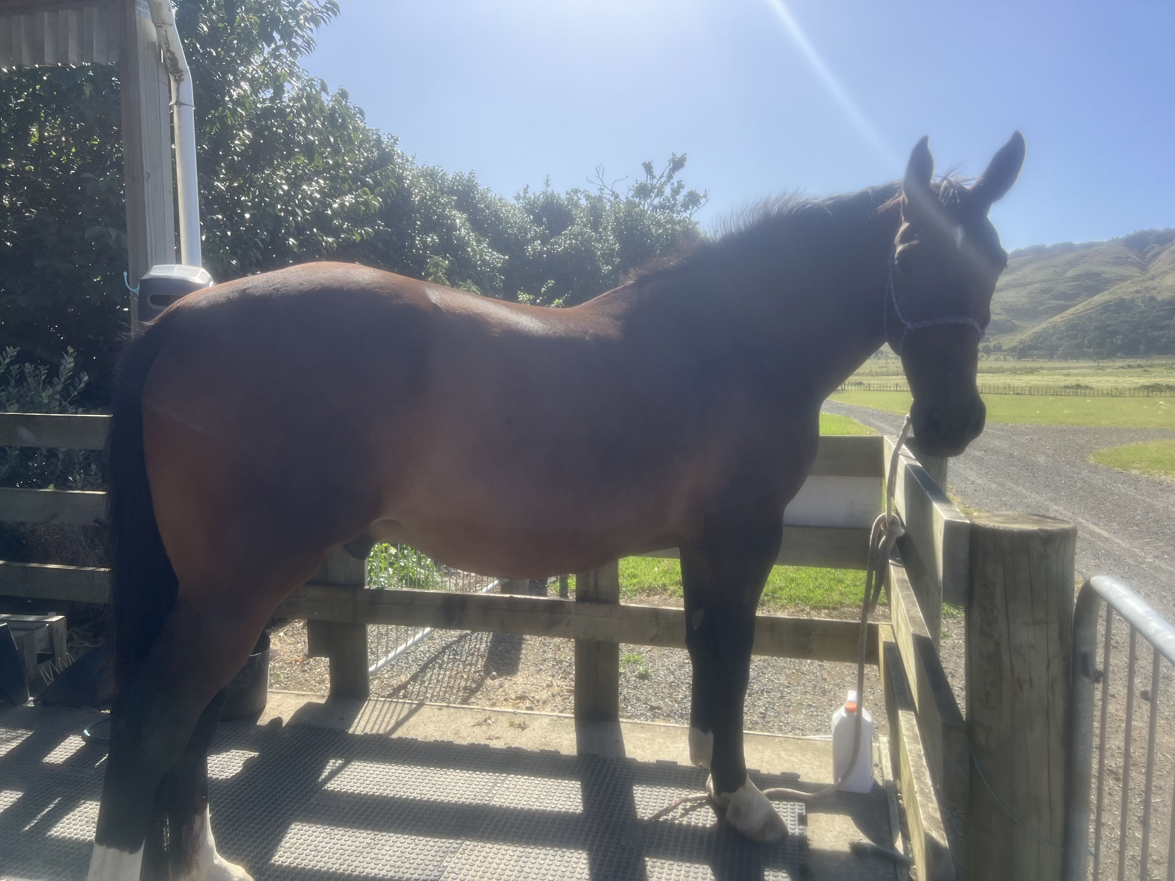 Toby, a 7-year-old well bred gelding by the known sire Euro Sport Centavos, renowned for producing quality sporthorses with scope, talent, and rideability. His dam, Indy, is a versatile mare with Oldenburg, Warmblood breeding out of Marokopa Captain and A East Coast Station Bred Mare (unknown), Indy has who has successfully hunted, show jumped, and evented with my mum.