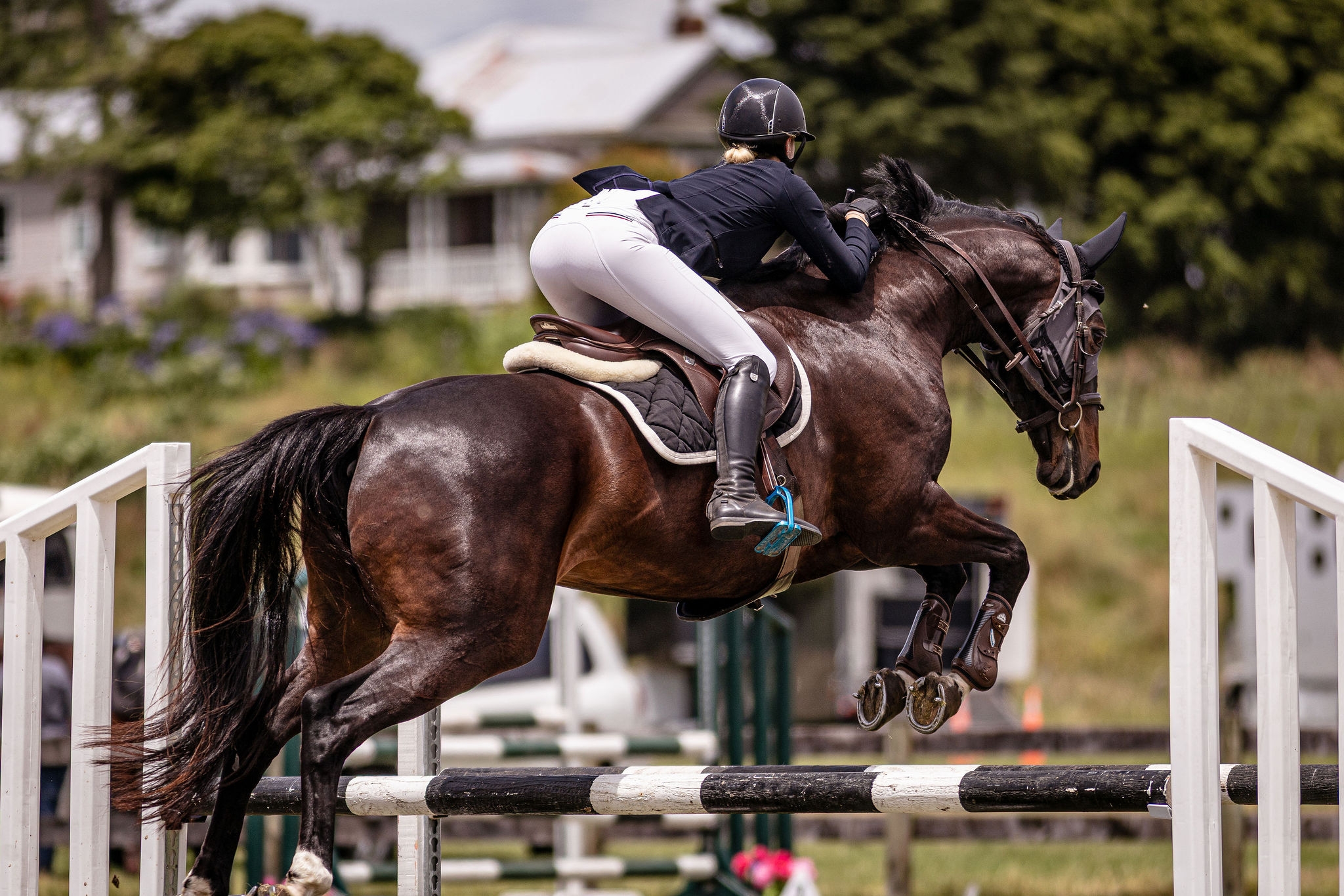 Competed mainly in show jumping as that is my thing. Competed up to 1.10m and schooling 1.15m at home. Although only competed in show jumping he has done some XC schooling and is established on the flat.