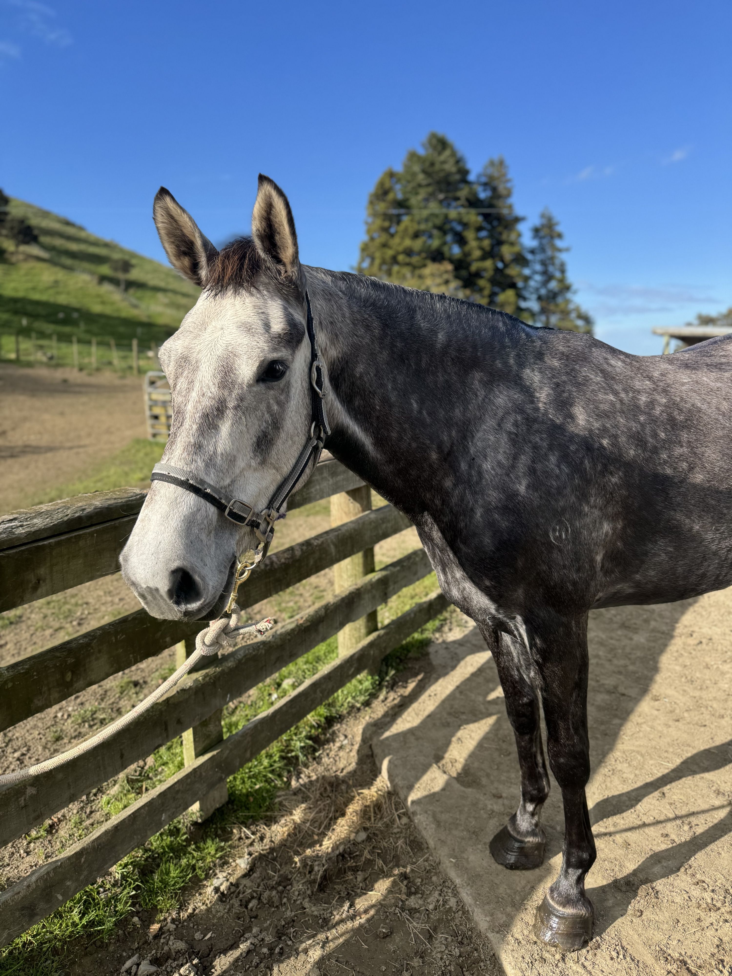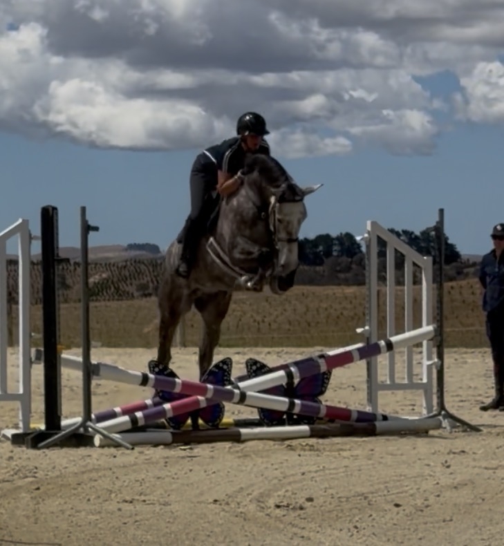 approx 16.2/3hh 4yr old mare by Chacco Silver x Ajaccio NZPH. Annie has 3 shows under her belt now, the highlight was winning the North Island 4yr old Championship at Taranaki. Lovely kind genuine girl who is willing to please. She is easy to do everything with, super to farm ride, behaves beautifully at the shows and is showing a lovely technique over the jump. Annie would suit someone wanting to produce a lovely young horse in any discipline. She has a clean set of recent X-rays, very mild shivers and a cosmetic scar on an hind fetlock.