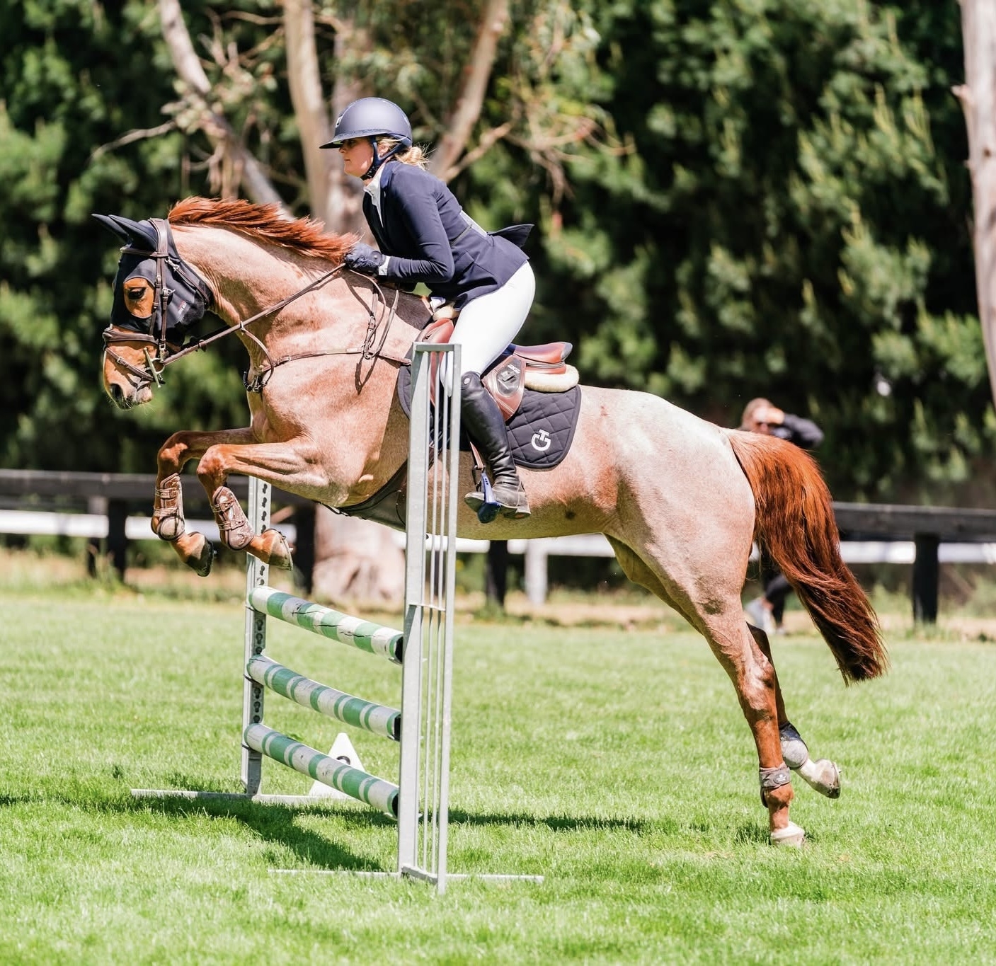 Barbs has just finished her first season, where she has competed at quite a few showjumping shows competing upto 90cm. She has a good shape over the fence and is very brave with not only her jumping but with everything she does.
