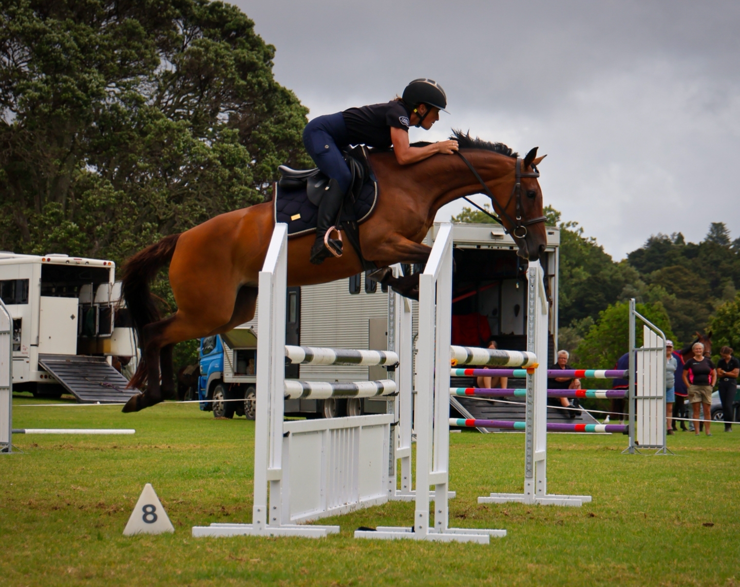 Competed to L2 dressage, show jumped to 1.15m practice days and 90/1m competition, 80cm eventing. Not phased by much, just gets in with her job.
